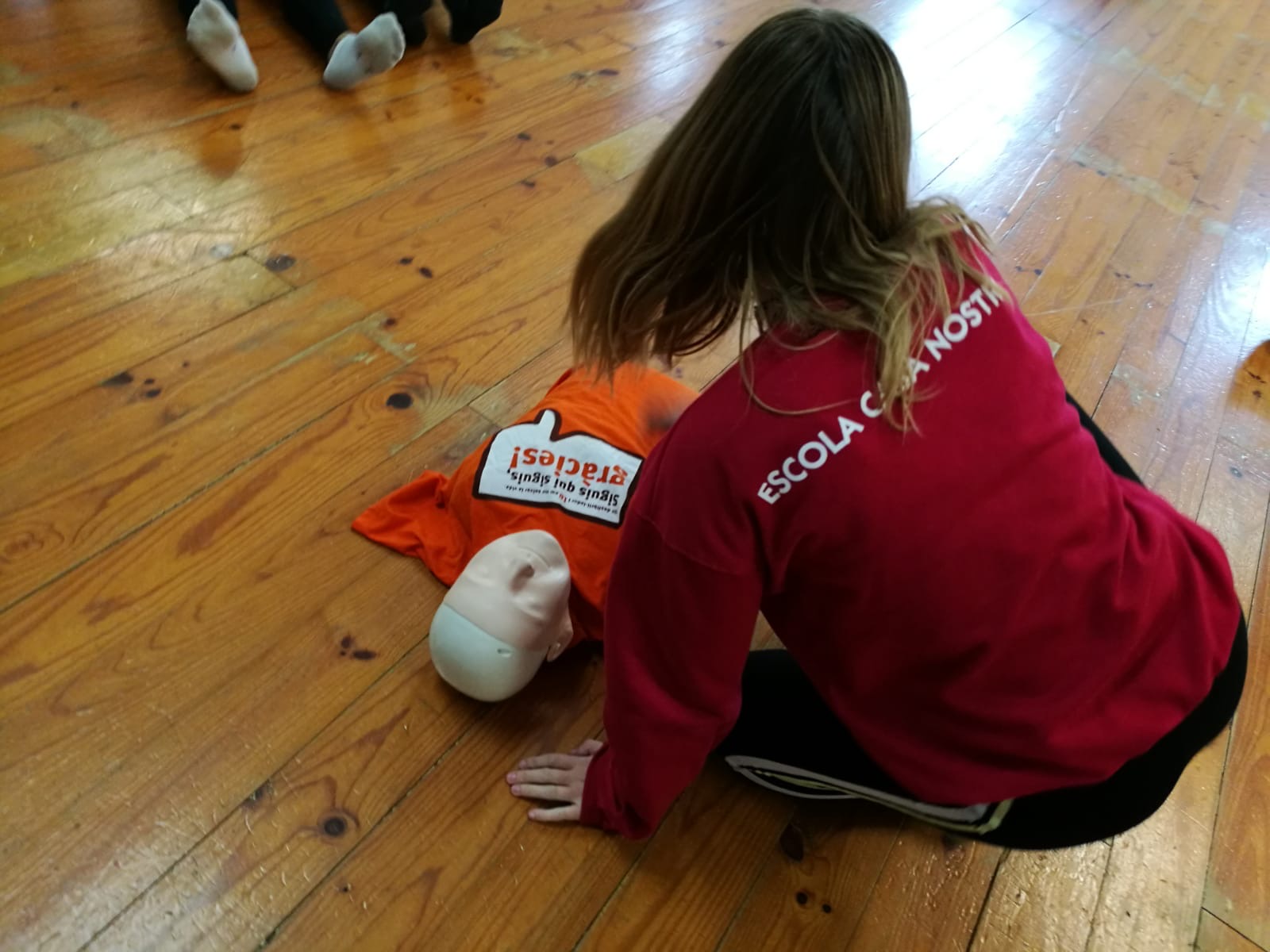 En aquest sentit, en les dues darreres setmanes hem desenvolupat el Programa de Suport Vital Bàsic a l’escola en els horaris d’Educació Física. A més, aquest any l’alumnat de 4t d’ESO rebrà el certificat oficial del Consell Català de Ressuscitació quan acabin l’ESO, que acreditarà els seus coneixement en Suport Vital Bàsic rebuts a l’escola.