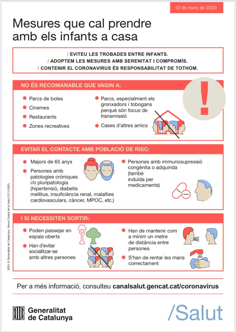 També us recordem que cal que seguiu les indicacions, recomanacions i protocols que estableix el Departament de Salut pel que fa a la prevenció del virus i que podeu consultar a http://canalsalut.gencat.cat/